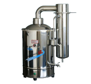蒸餾水器是用電加熱自來(lái)水制取純水。化驗(yàn)室等部門(mén)使用蒸餾水器一般都是采用優(yōu)質(zhì)的不銹鋼材料,經(jīng)過(guò)特殊處理后加工而成。這樣不僅充分保證了蒸餾水的質(zhì)量,而且也大大提高了使用壽命。